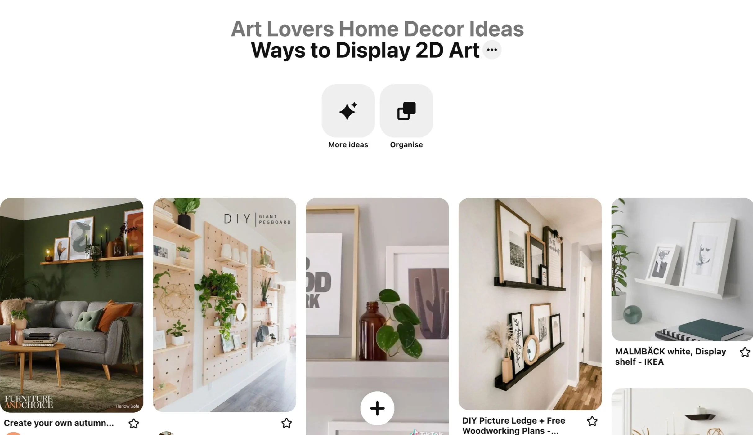 I’m also gradually building this section as I find innovative ideas on alternatives to the usual practice of putting a ‘nail in the wall’. Most of the pins on this board show art displayed on shelves as opposed to picture hooks.